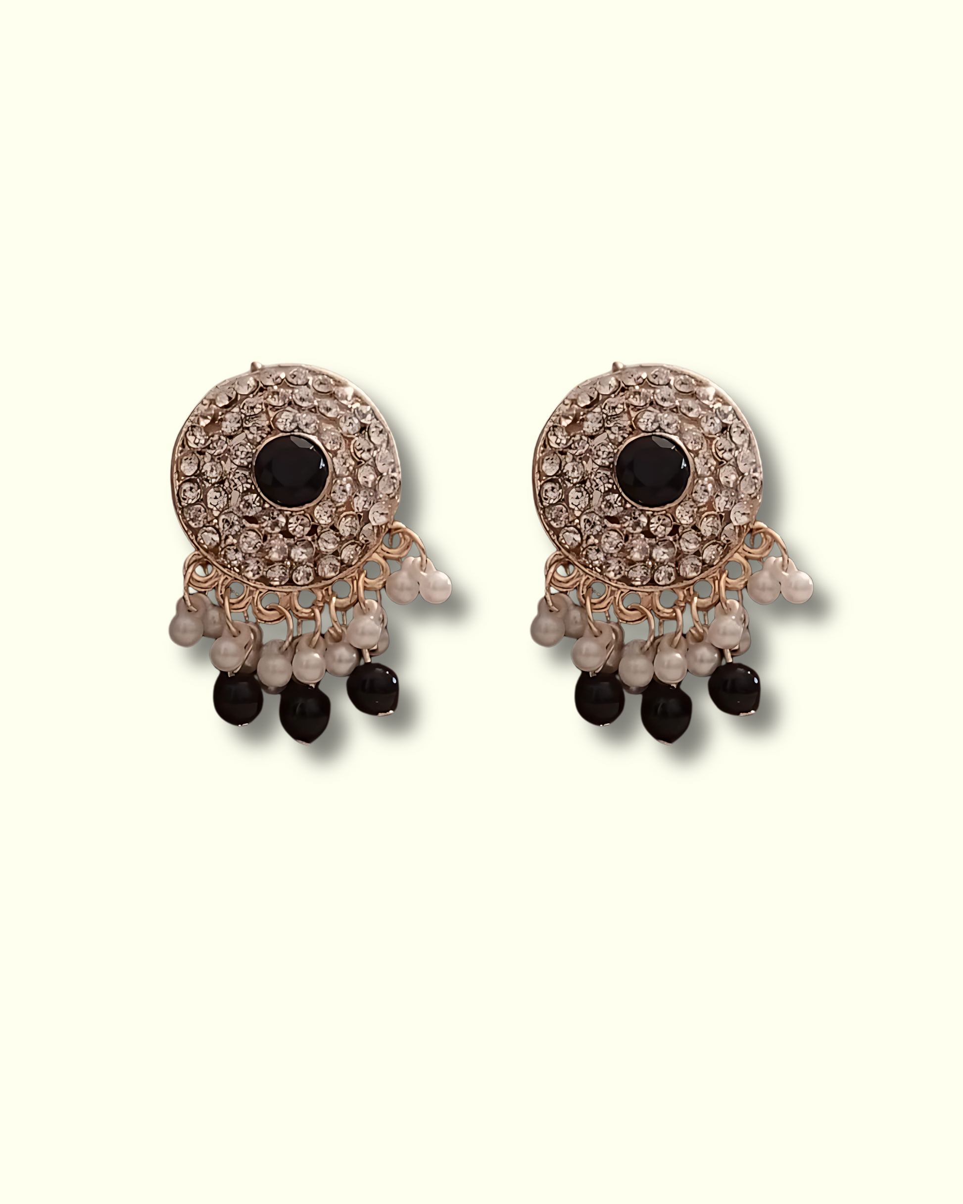 Crafted with premium quality materials, this jewelry set includes a statement necklace and matching earrings. Designed with black stones, sparkling crystals, and pearl drops on a gold-tone base. Perfect for weddings, festive events, and party wear.